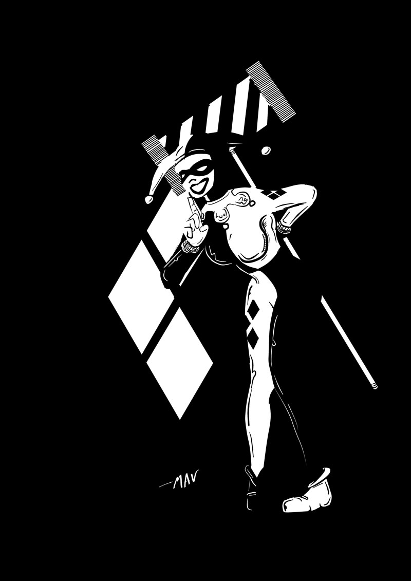 Sometimes when I need to clear my mind I sit down and do some sketches. In this case I figured I might as well do some of Harley that I might use for my title card in my slide presentation. So I did two. I’m kind of curious if people have a preference. One or the other? Both? I’ll actually be addressing both costumes in my talk.